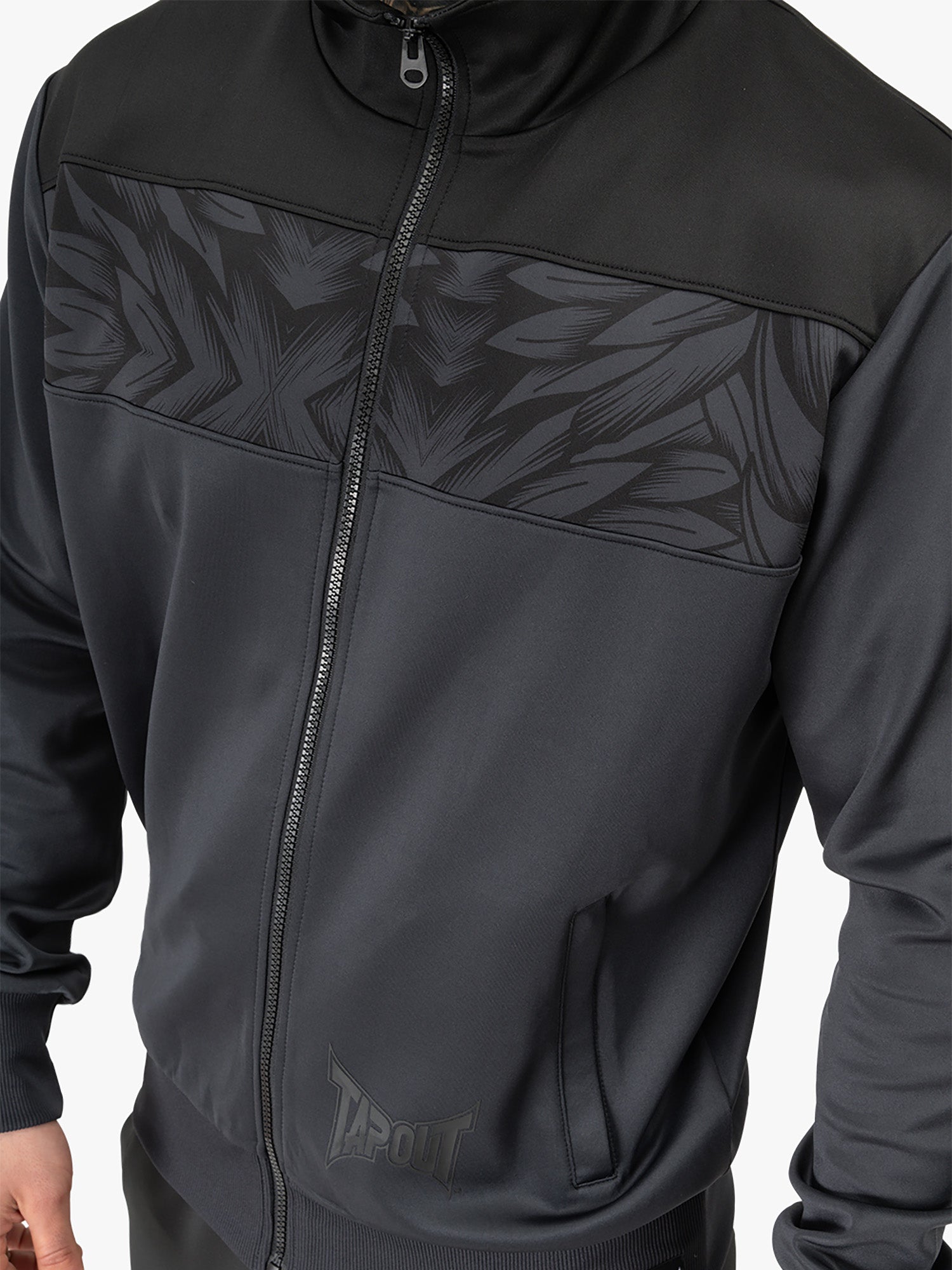 Tauche ein in den sportlichen Stil mit unserem Trainingsanzug SPIRIT TRACKSUIT. Die Jacke des Sets punktet mit zwei verdeckten Reißverschlusstaschen und einem bedruckten Paneel auf Brusthöhe, welches dem Design eine besondere Note verleiht. Ein kleines Markenlogo ziert die Vorderseite unten, während auf der Rückseite ein größeres Logo für einen markanten Look sorgt. Die Hose punktet mit einem innenliegenden Kordelzug im elastischen Rippbündchen, der für eine optimale Passform sorgt. Genügend Platz bieten auch hir zwei verdeckte Reißverschlusstaschen. Abgerundet wird der Look durch das eingesetzte Paneel am linken Bein und dem darüberliegendem Tapout Logo. Erlebe Komfort und Style in einem mit dem Anzug von Tapout.
